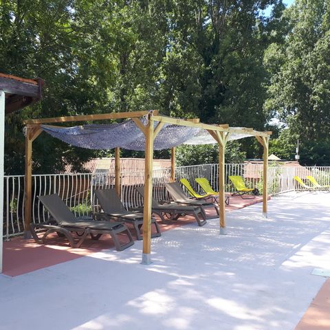 U kunt ook ontspannen op de ligstoelen van Camping Bois et Toilés in de Drôme, lezen in de schaduw van de zeilen of opwarmen in de zon. Het zwembad is volledig omheind met standaard hekwerk, zodat uw kind niet zonder begeleiding het zwembadhek kan betreden.