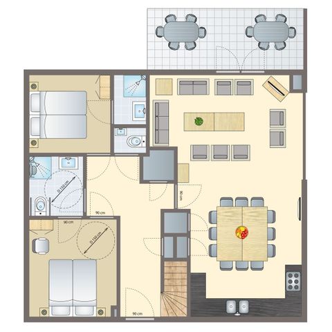 Oppervlakte, indeling, slaapkamer(s): de indeling en afmetingen van de accommodatie en de slaapplaatsen kunnen per woning verschillen. Ze worden als voorbeeld gegeven en zijn niet contractueel.