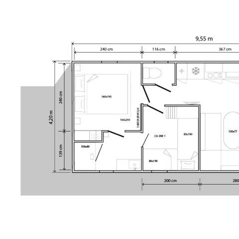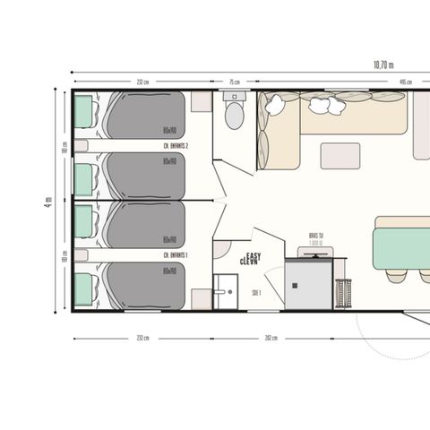Stacaravan 4 personen - 2+2 (tot 12 jaar) Pipowagen